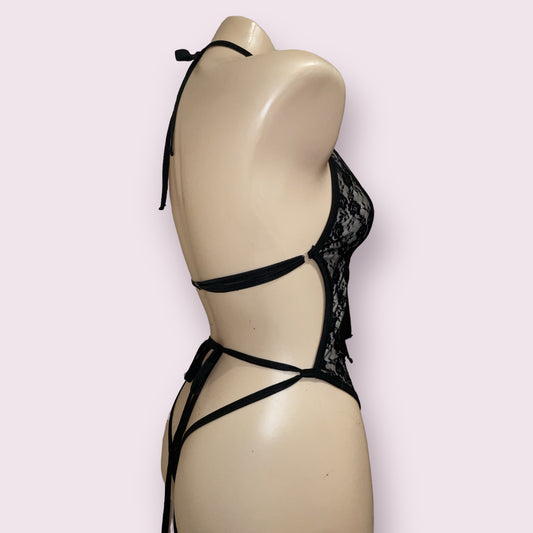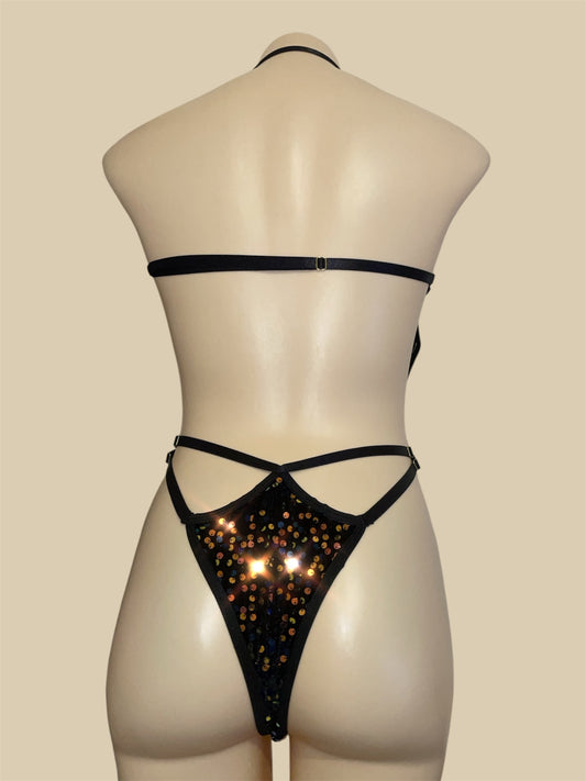 Baby bodysuit - Midnight Mirage – black velvet iridescent sequins on dreamy black lace
