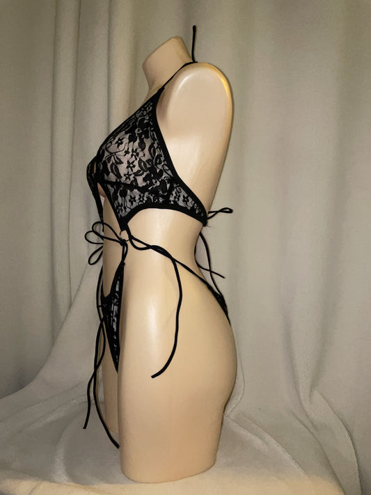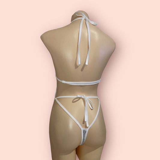 Black diamond pattern bowtie bikini top 2.0 - adjustable