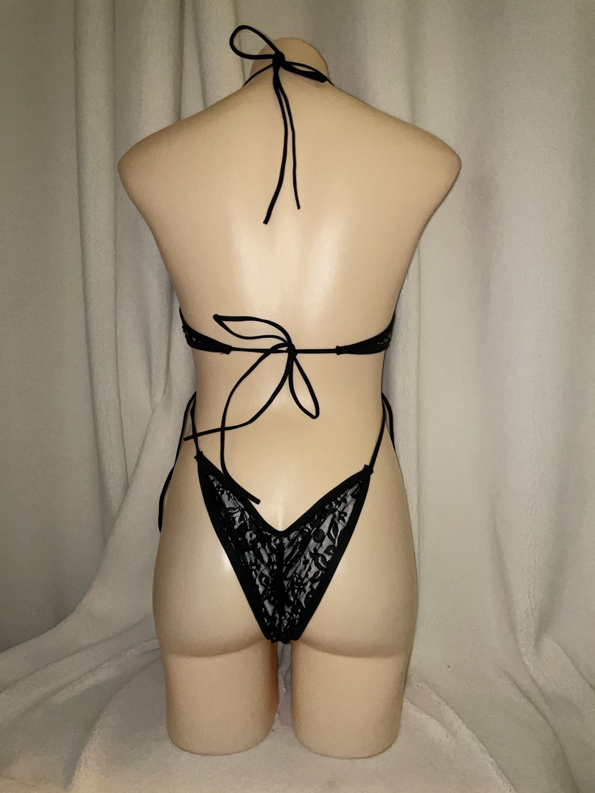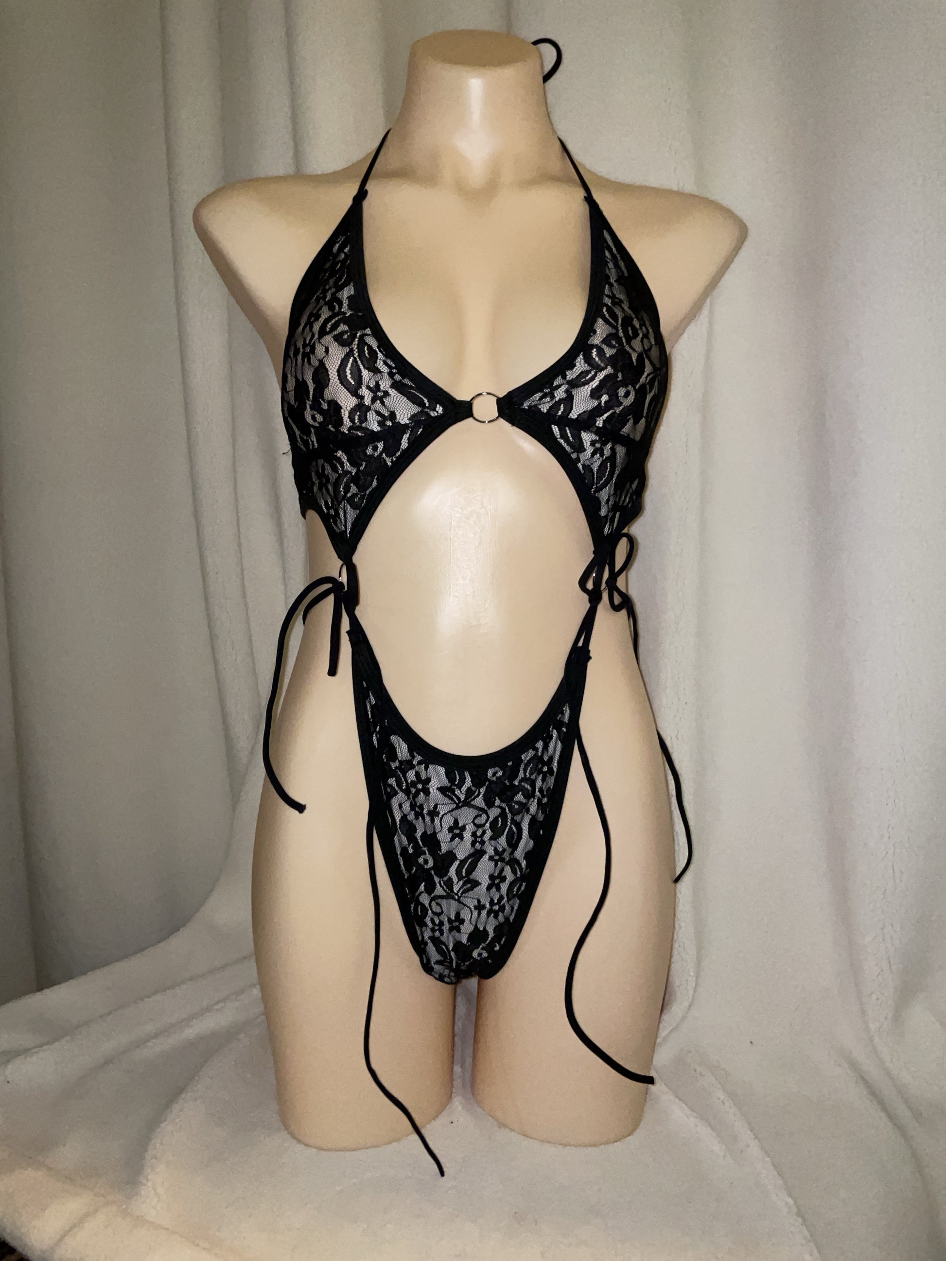 Black lace bikini tie bodysuit