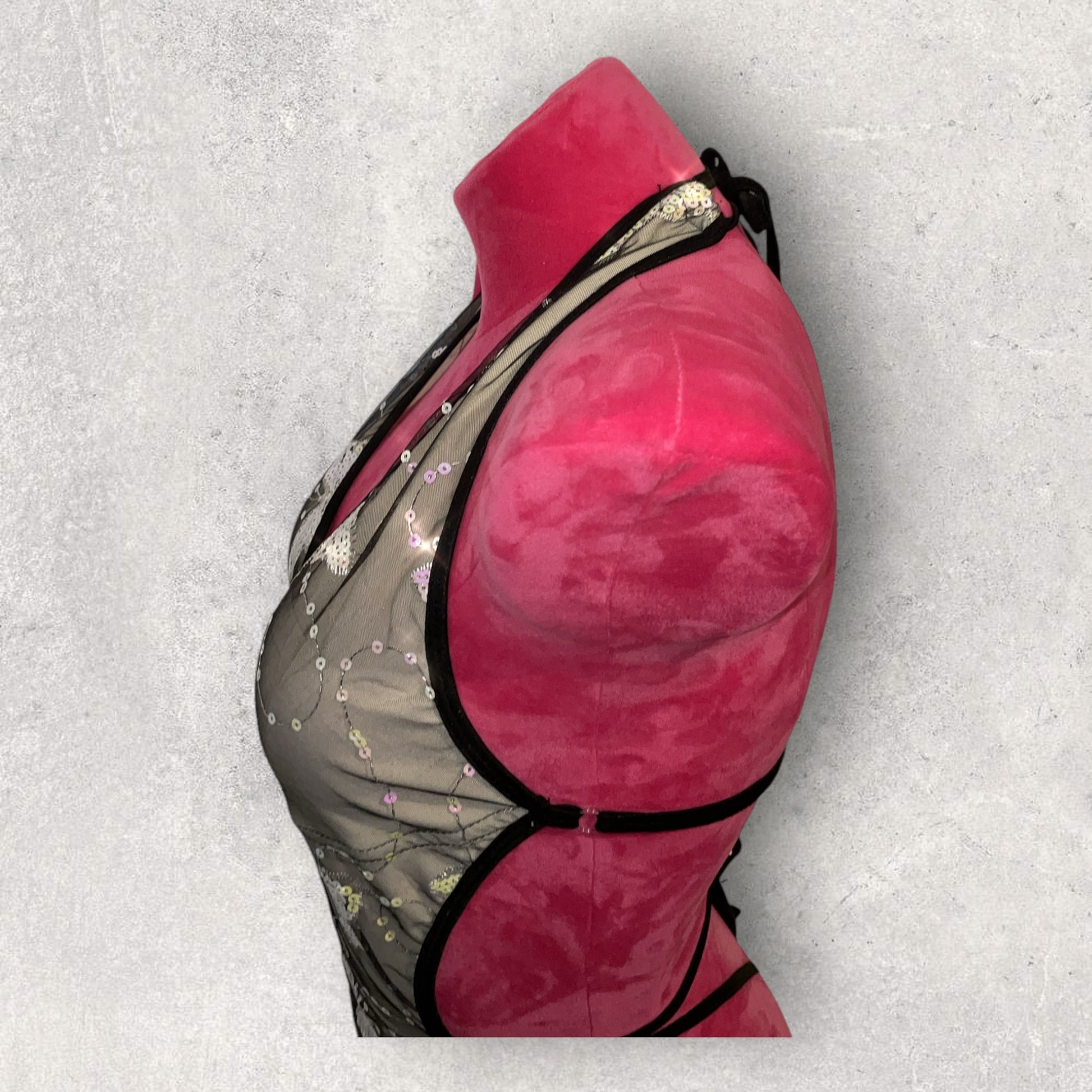 Butterfly 🦋 + black mesh sequin bodysuit adjustable