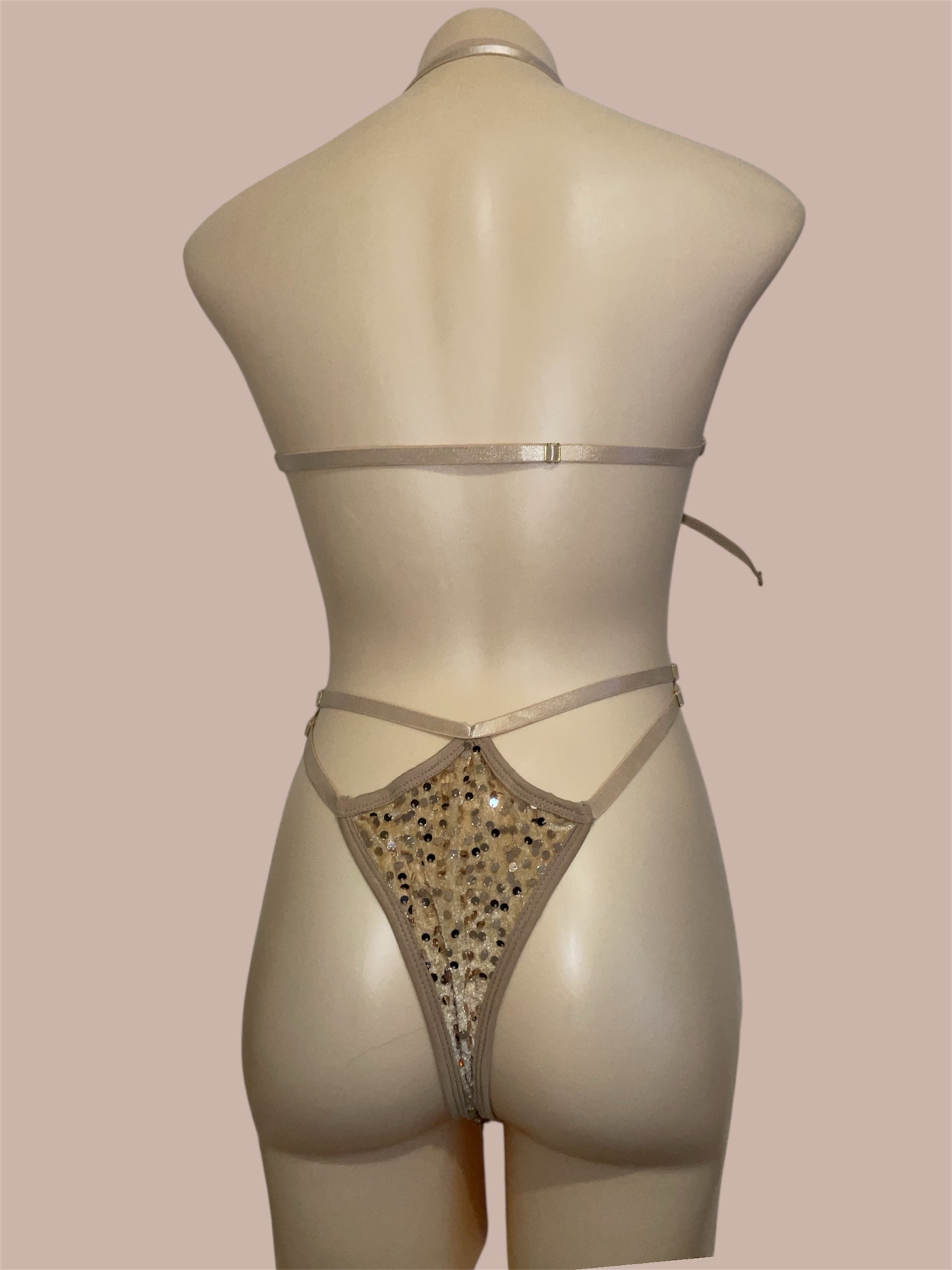☁️ Champagne Cloud – beige & gold sequins on creamy beige mesh