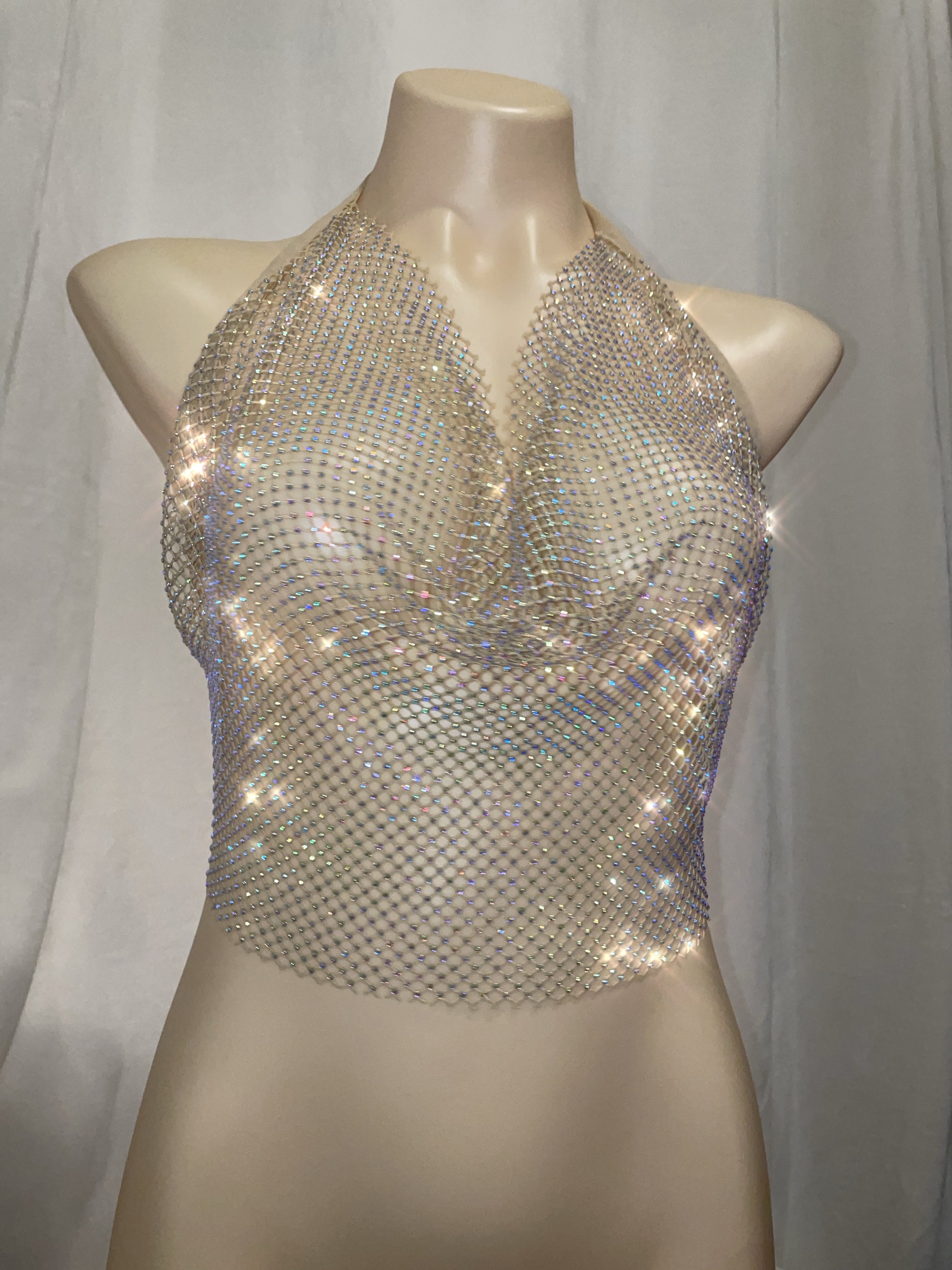 Fishnet Rhinestone tie top