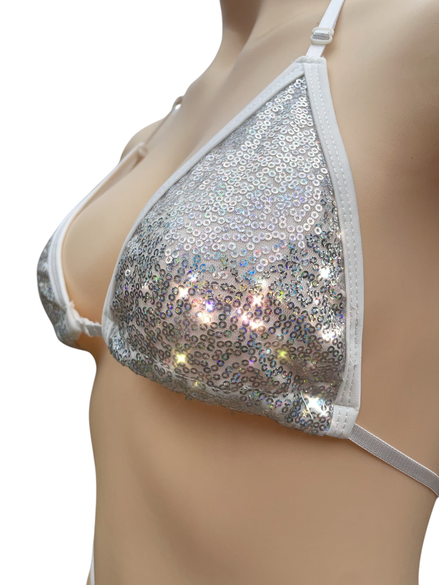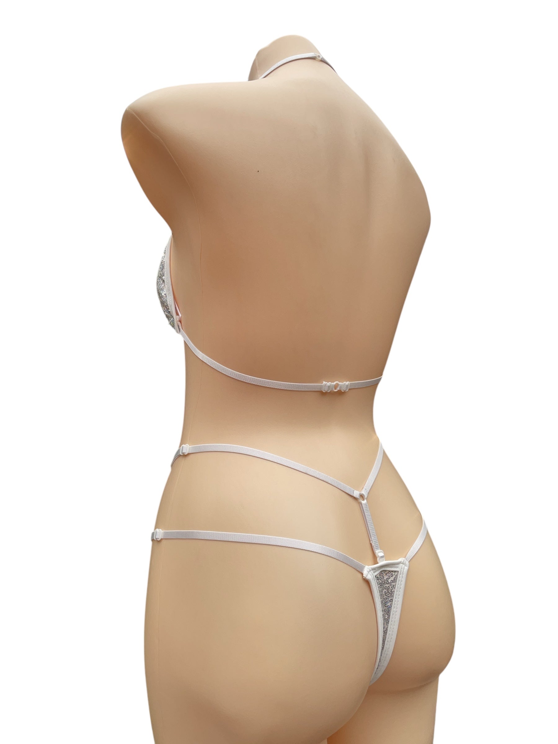 Shine like the divine in this stunning sequin bikini! Featuring adjustable straps for a custom fit, it effortlessly flatters sizes 6-12. Perfect for performances, photoshoots, or just feeling fabulous!