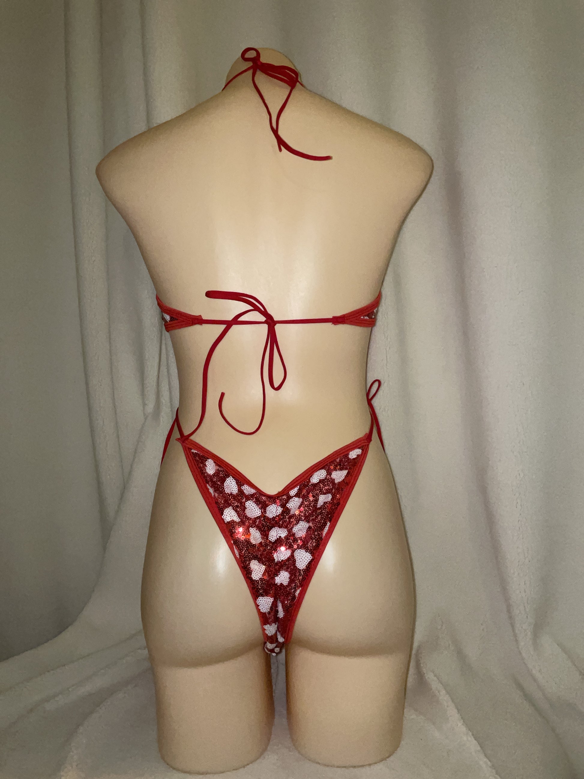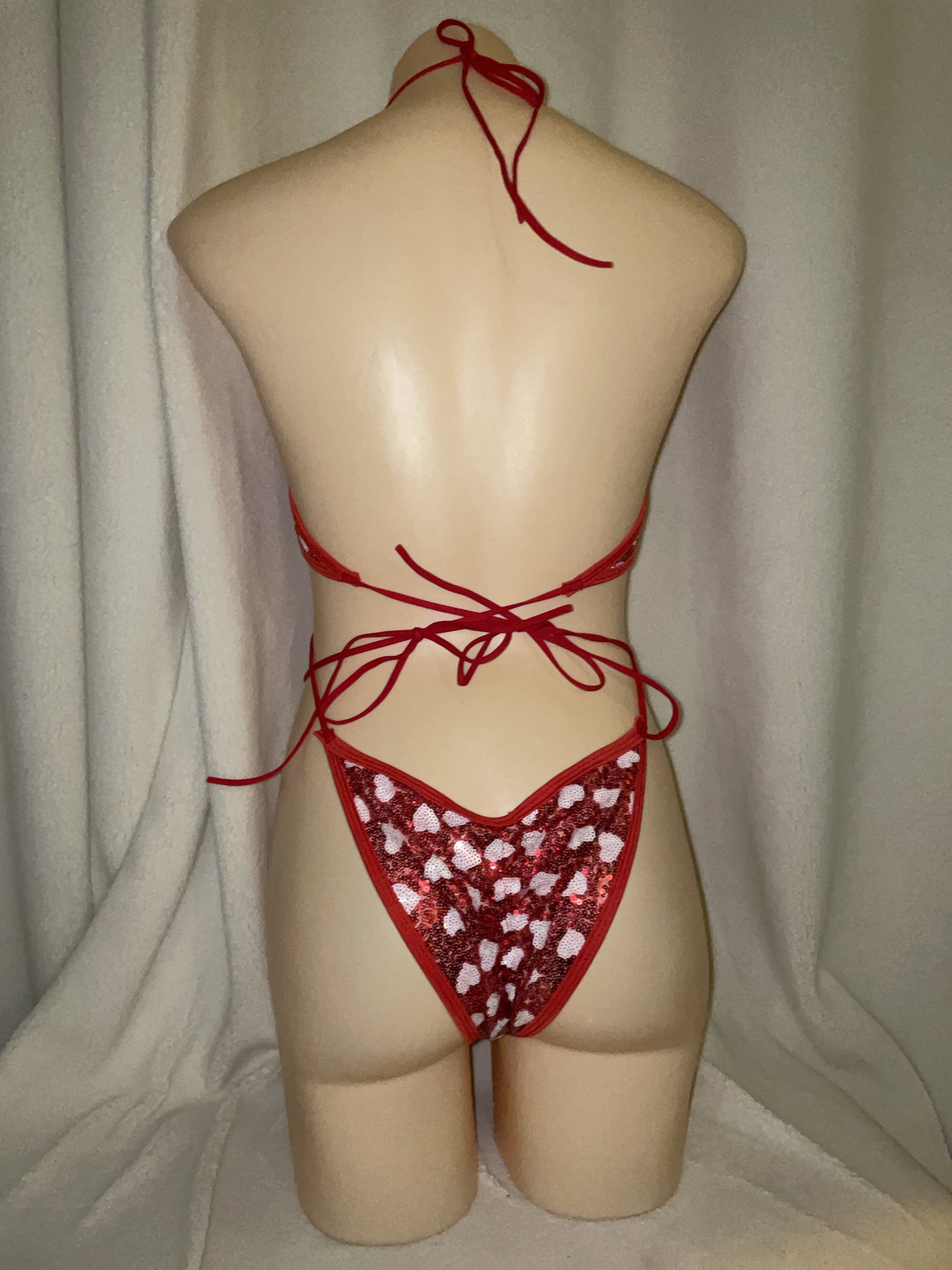 Love heart sequin bikini tie bodysuit